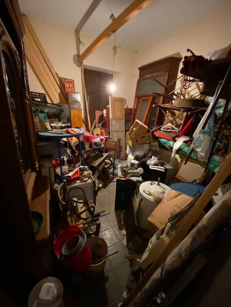 Deze moeten leeg omdat 19 juli onze inboedel komt vanuit Nederland.Dit hebben we samen allemaal naar buiten gewerkt.Gesorteerd op hout, metaal, elektrische apparaten en ander grofvuil.Er staan nog een paar items op de foto’s die er inmiddels ook uit zijn.Langzaamaan komt er steeds meer ruimte in het Palazzo Lucini.